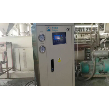 塑膠擠出設(shè)備一般都是先通過(guò)高溫將物流融化,然后通過(guò)擠出模頭將產(chǎn)品擠出成型,因塑膠產(chǎn)品在高溫下是沒(méi)有一定的硬度容易變形,所以在產(chǎn)品成型后需要通過(guò)冷水讓產(chǎn)品快速定型。在此過(guò)程中就會(huì)需要用到我們的冷水機(jī),如果沒(méi)有冷卻水那么會(huì)造成產(chǎn)品的生產(chǎn)效率比較低并且殘次率會(huì)偏高。在為塑膠擠出用冷水機(jī)配置選型的時(shí)候需要特注意,一般的擠出設(shè)備都有一個(gè)冷卻槽,那么冷水機(jī)的配置與我們的標(biāo)準(zhǔn)機(jī)會(huì)有一定的區(qū)別。